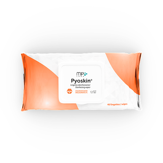 Les lingettes humides Pyoskin Wipes désinfectantes pour chiens et chats, idéales pour l’entretien quotidien des coussinets, des espaces interdigitaux et des plis cutanés. Elles éliminent les mauvaises odeurs, désinfectent et nettoient les petites blessures.